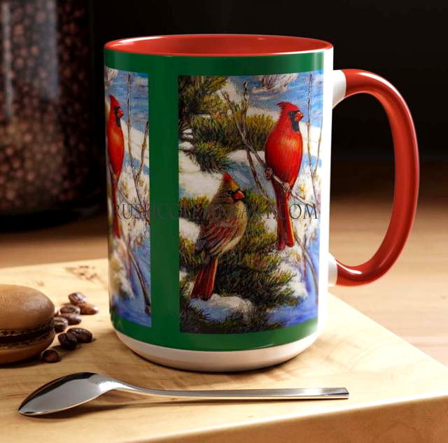 "RED BIRD WINTER" Fine Art Mug